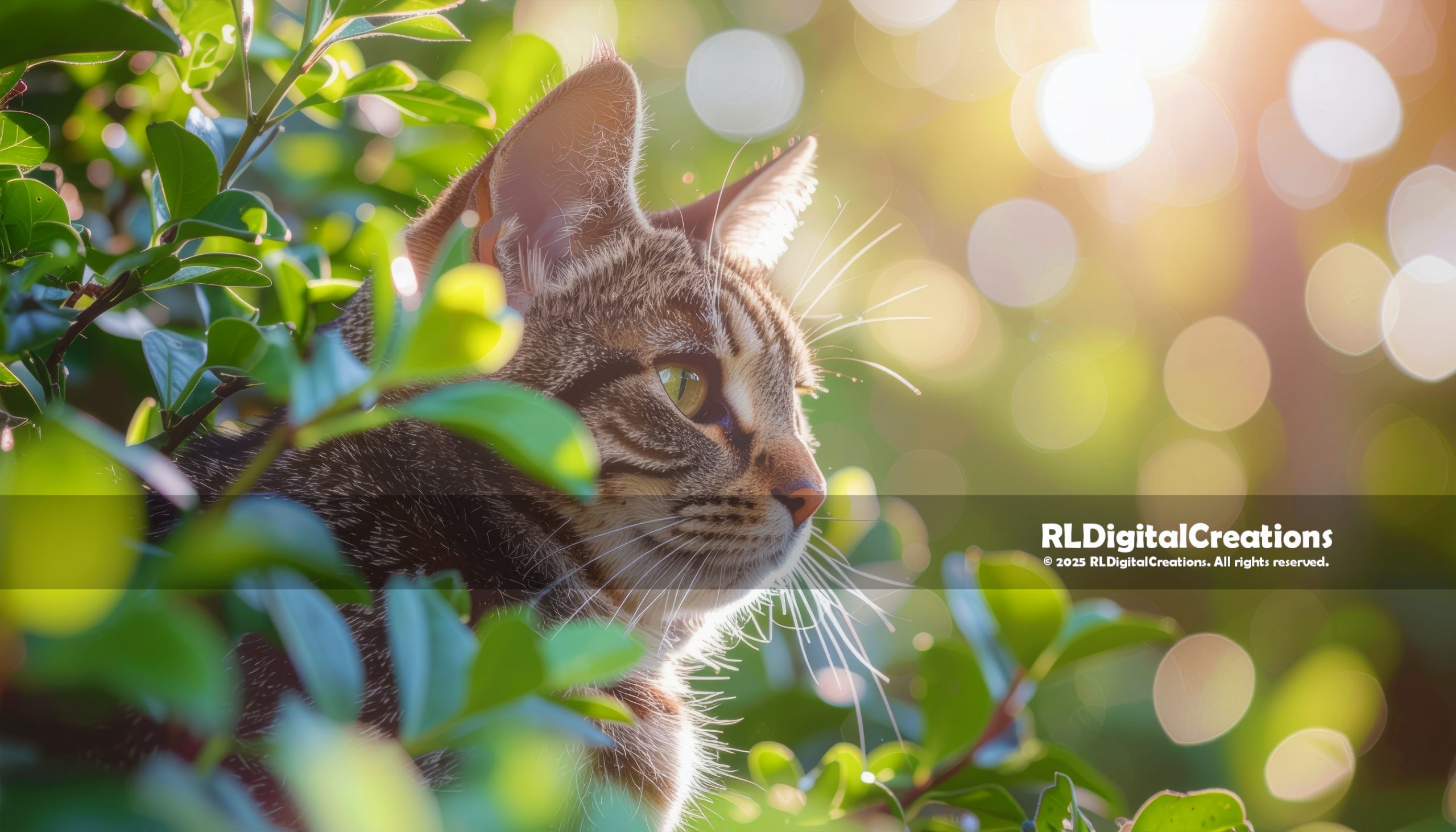 Sunlit Garden Hideaway – Tabby Cat Digital Art